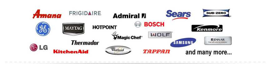 Brown Washer Repair, Bryant Refrigerator Repair, Caloric Oven Repair, Carrier Dishwasher Repair, Crosley Appliance Repair, Dacor, Day & Night, Electrolux Washer Repair, Emerson Stove, Friedrich AC, Frigidaire Freezer, Gaggenau, GE Profile Repair, GE washer repair General Electric, Gemline, Gibson, Goldstar, Goodman, Hampton Bay, Hardwick, Heil, Honeywell Oven Repair, Hotpoint Appliance Repair, Janitrol Appliance Repair, Jenn Air Dishwasher Repair, Kenmore Washer Repair, Kitchen Aid Dishwasher Repair, Freezer Repair, Lennox Refrigerator Repair, LG Appliance Repair, Litton Appliance Repair, Magic Chef Refrigerator Repair, Maytag Washer Repair, Modern Maid Cooktop Repair, Panasonic Dryer Repair, Puron Dishwasher Repair, Quasar Dishwasher Repair, RCA Appliance Repair, Roper Appliance Repair, Ruud Appliance Repair, Samsung Dryer Repair, Sanyo Washer Repair, Sears Dryer Repair, Signature Washer Repair, Speed Queen Washer Repair, Sub Zero Refrigerator Repair, Summit Appliance Repair, Sunray Appliance Repair, Tappan Stove Repair, Tempstar Appliance Repair, Thermador Oven Repair, Traulsen Commercial Repair, U-line (Uline) Oven Repair, Wards Refrigerator Repair, Weathertron Repair, Wedgewood Appliance Repair, Whirlpool Repair, White Rogers Appliance Repair, Westinghouse Appliance Repair, Wolf Appliance Repair.